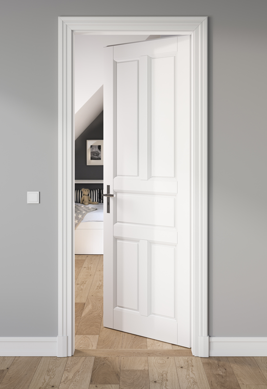 ca. 40 mm MDF 3-fach verleimt, mit gefrästen Feldern und flächenunterbündigen Aufdoppelungen